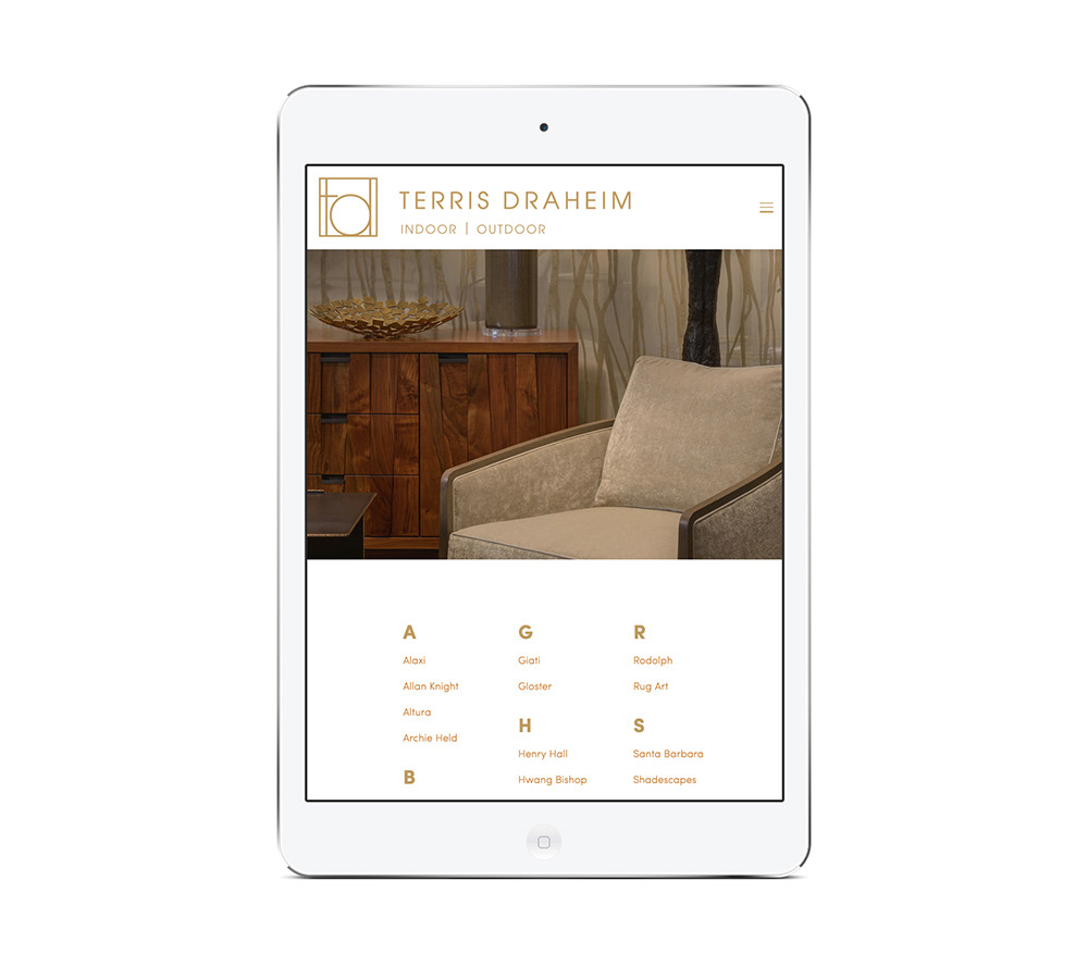 Informational website for a business with multiple showrooms intended to tie the two spaces together yet highlight the each showrooms' many vendors. Custom vector icons.