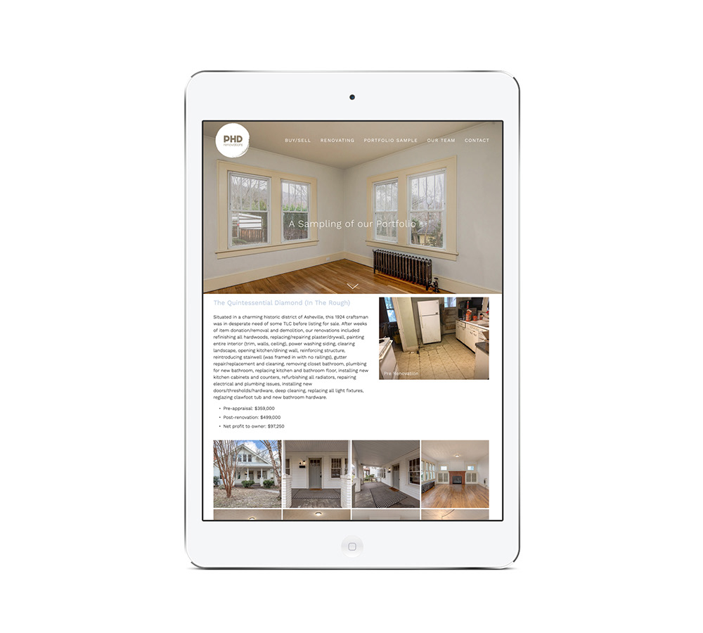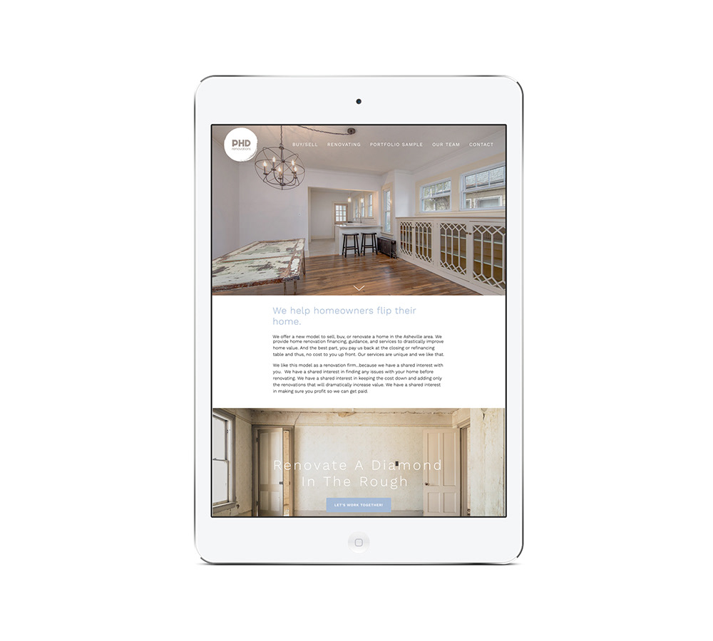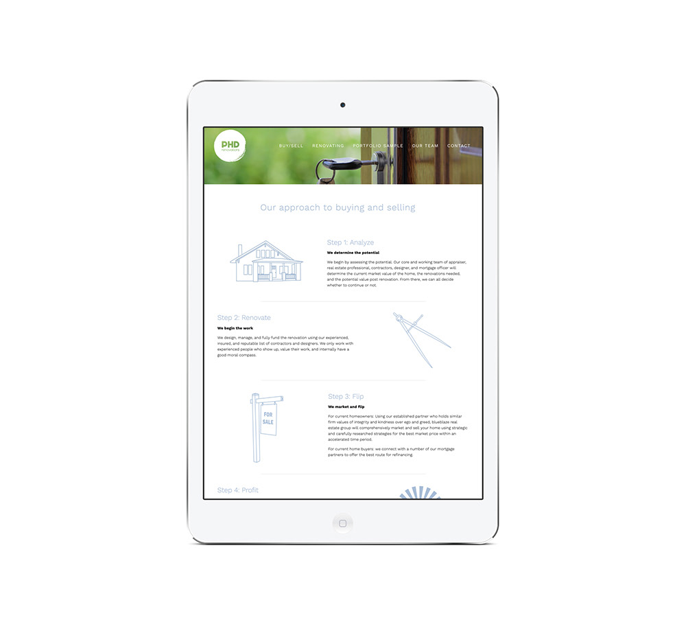 Informational website for a firm renovating and flipping homes. Includes original vector graphics.