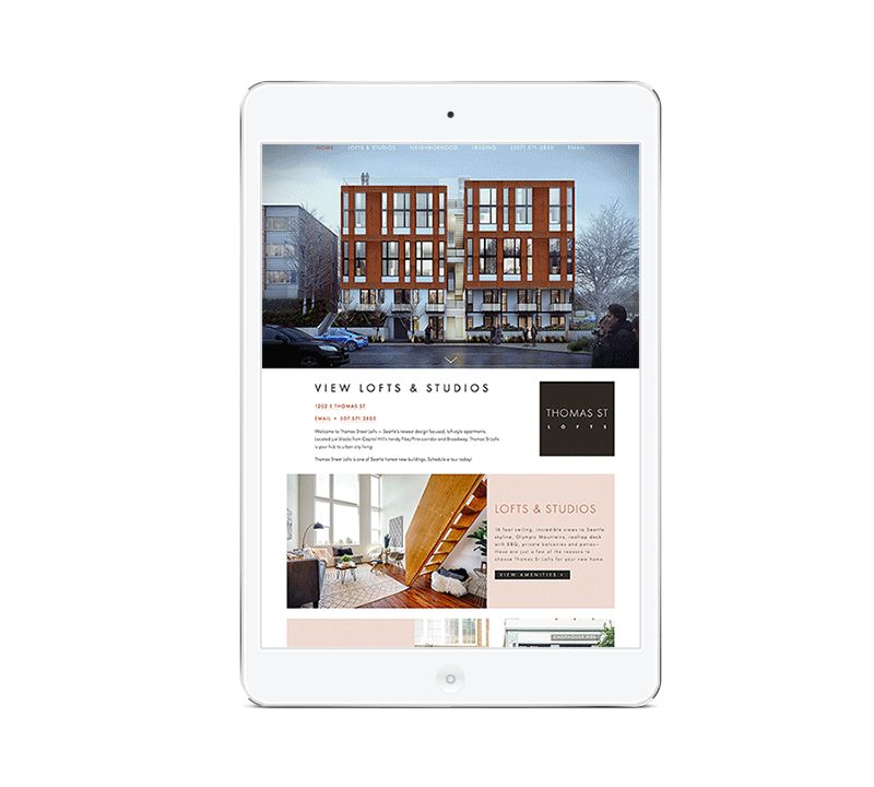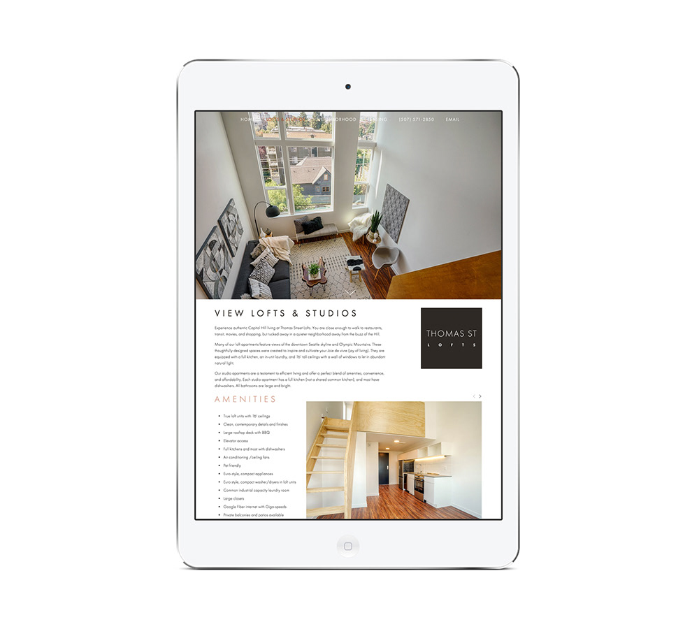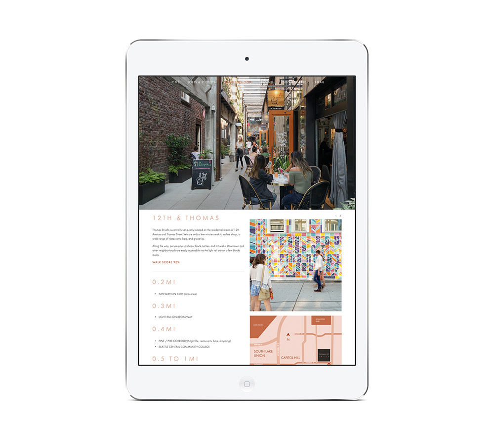 Website for a new construction apartment complex. Created logo, custom vector map, and unit photography.